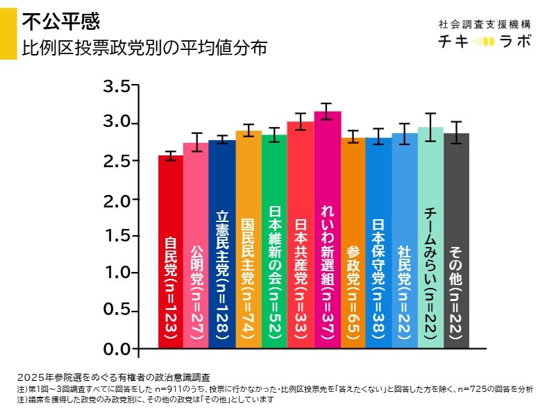 経済的には安定した層が参政党を支持する傾向。その主観的不公平感は?