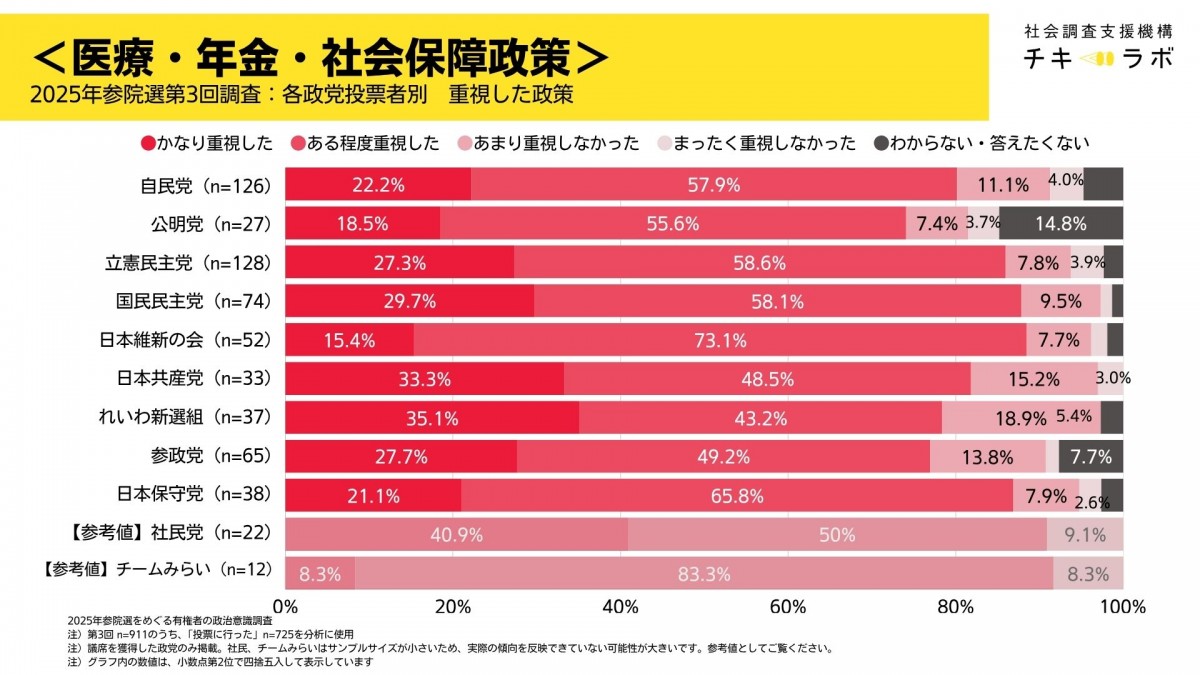 医療・年金・社会保険を重視するも…公明党支持層は他党よりやや低め、野党より自民党に近い傾向