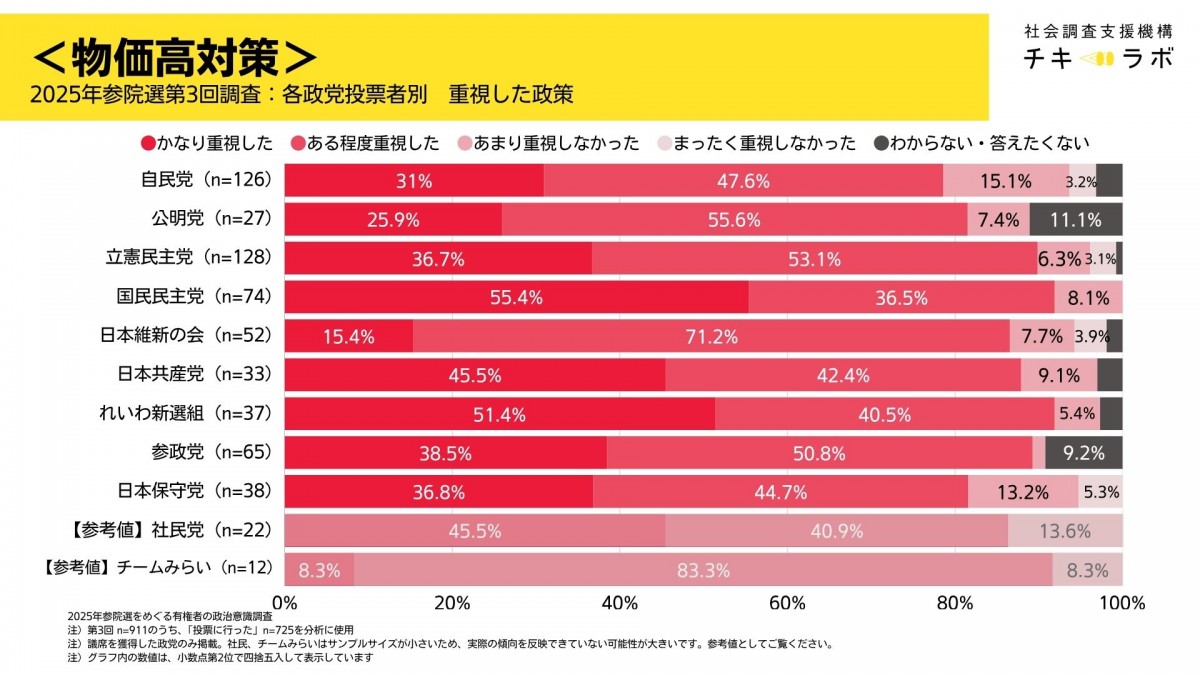 「物価高対策」への意識差―公明党は自民に近く、立憲・国民民主党支持層がより強く重視